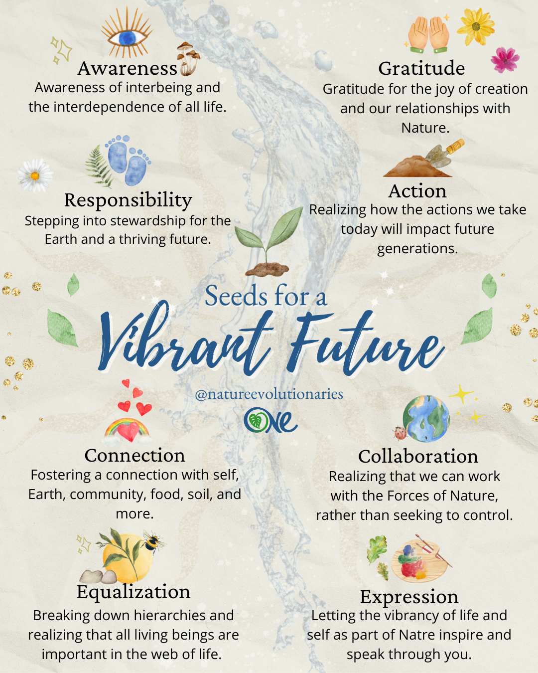 Together, we move to rededicate ourselves to Earth and all her beings and renew our commitments to a thriving co-creative partnership with all life. We come together in the present to tend to the future.